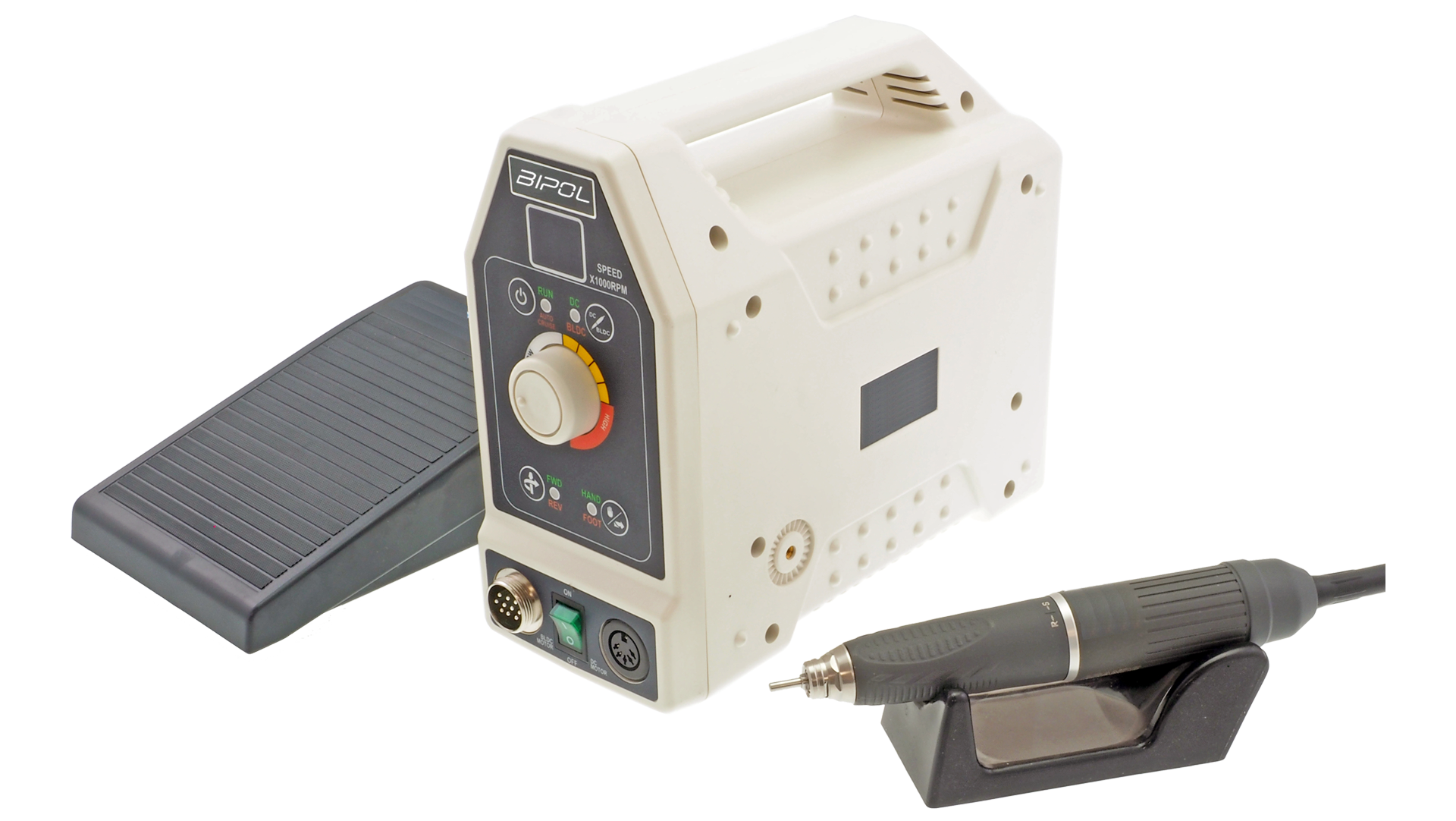 Parmi les nombreuses innovations de l’unité de commande GR-H, un affichage digital de vitesse pouvant être paramétré en fonction du type de pièce à main utilisé (vitesse et couple), pour optimiser les performances.